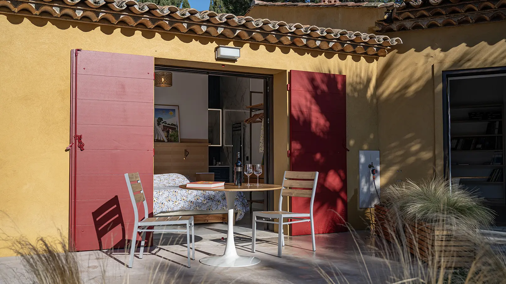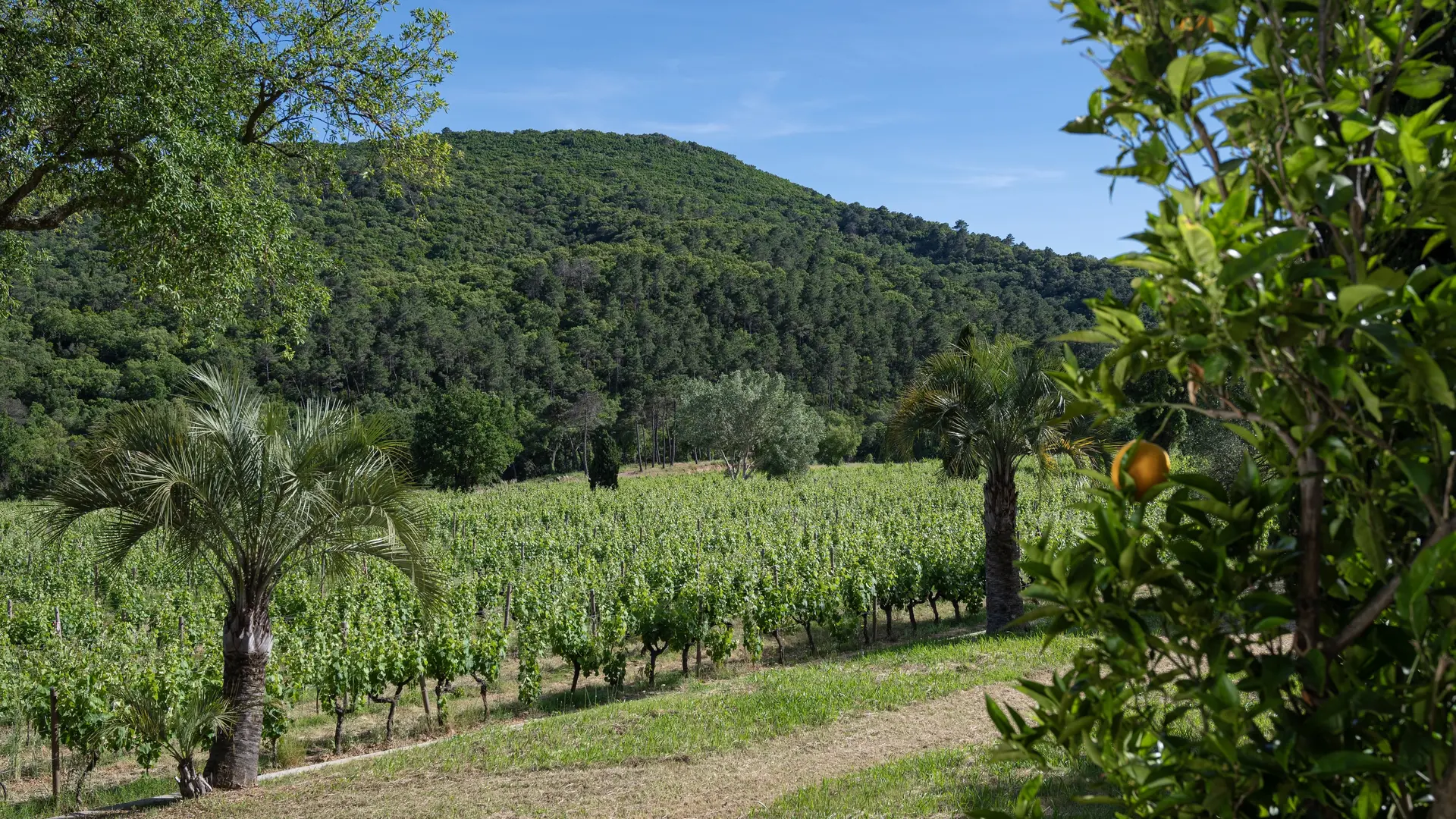 Gästehaus inmitten der Weinberge des Weinguts Clos Mirages und gegenüber dem Massif des Maures.
