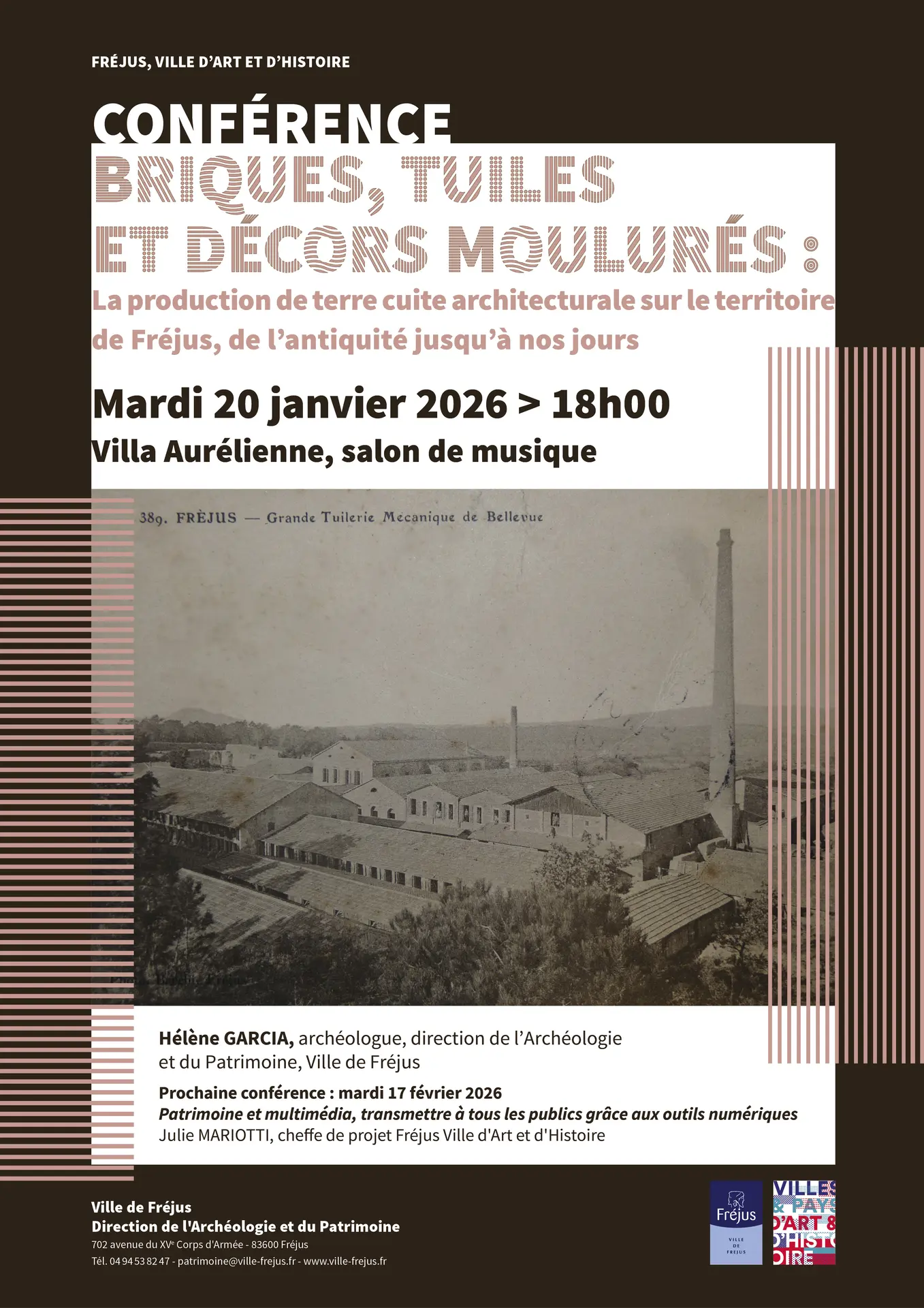 Conférence du Patrimoine - Briques, tuiles et décors moulurés : la production de terre cuite architecturale sur le territoire de Fréjus de l’antiquité jusqu’à nos jours