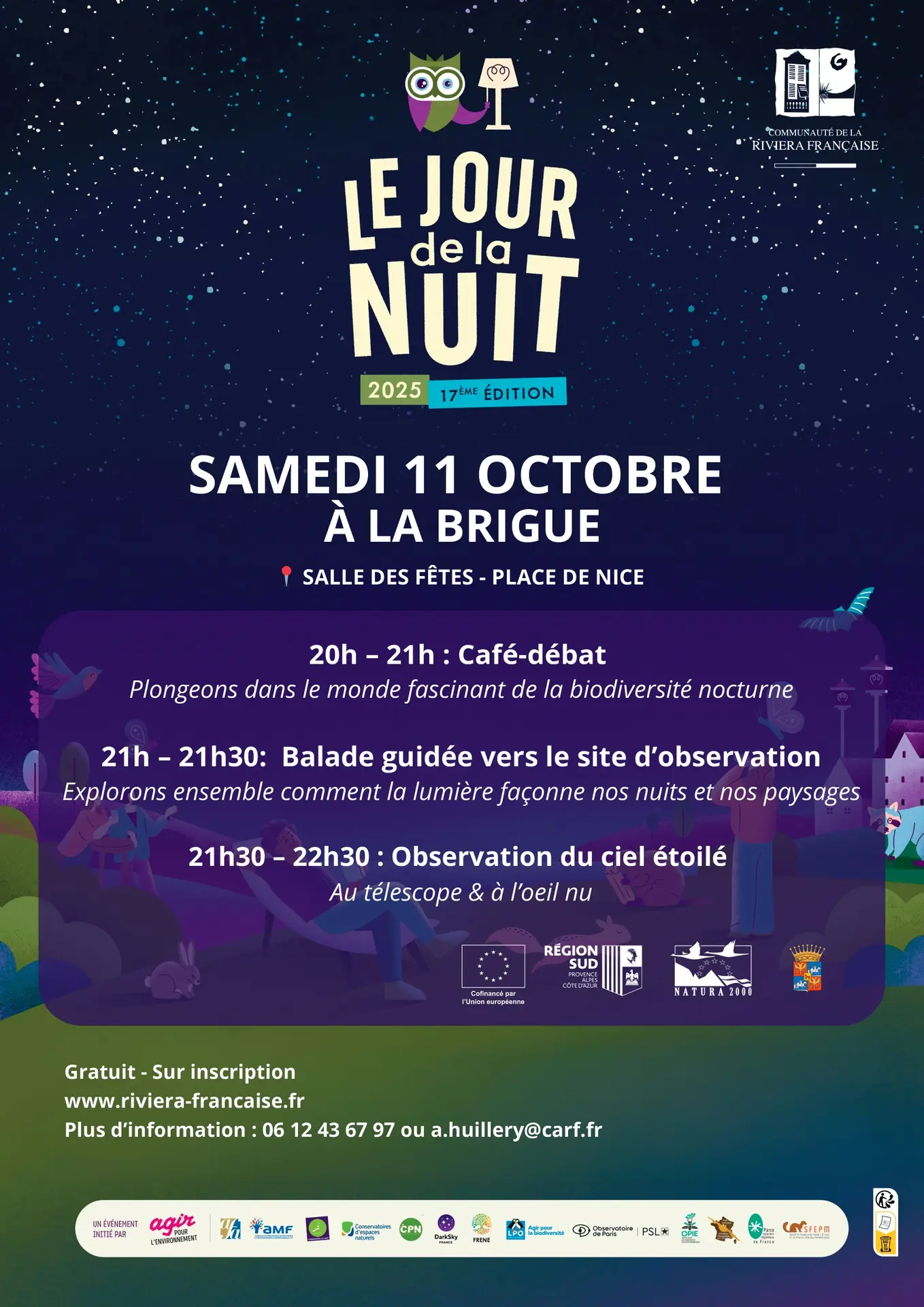 Die Gemeinschaft der französischen Riviera und die Gemeinde La Brigue laden Sie zu der Veranstaltung : Jour de la Nuit. Einen Abend lang wollen wir gemeinsam den Zauber der Nacht wiederentdecken, herausfinden, wer wacht, wenn wir schlafen, und gleichzeitig daran erinnern, wie wichtig es ist, unseren Energieverbrauch zu senken.