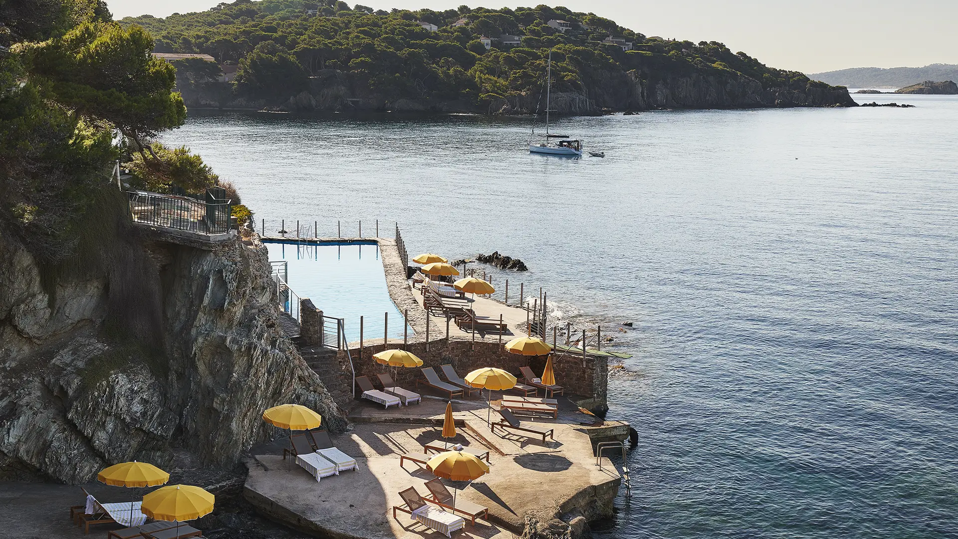 Das Le Provençal in Giens ist mehr als nur ein Hotel, es ist vor allem eine Landschaft. Eingebettet im Herzen der Halbinsel öffnet sich dieses 4-Sterne-Hotel zum Mittelmeer hin und bietet heute 37 Zimmer und 4 Suiten, 4 Restaurants, einen Tennisplatz und seinen berühmten, in den Felsen gehauenen Meerwasserpool.