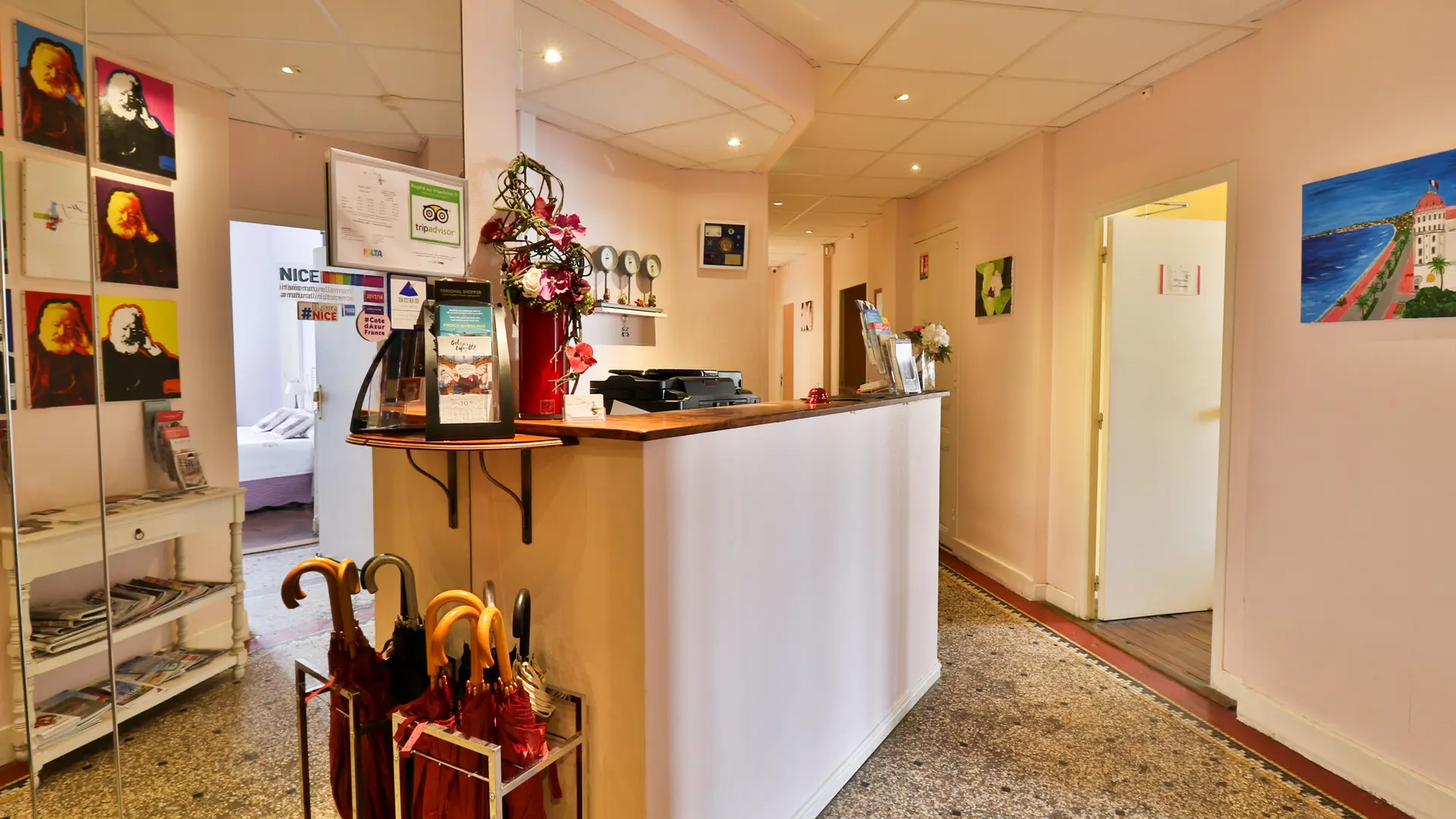 Das Hotel befindet sich in einem warmen und klimatisierten Raum und liegt ideal an einer der renommiertesten Avenuen von Nizza, 5 Minuten von der Promenade des Anglais und den Stränden, 10 Minuten vom Stadtzentrum und der Altstadt von Nizza entfernt.