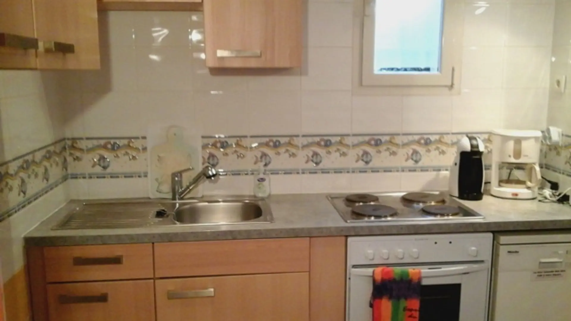 * Ausgestattete Küche (Kochplatte, Kühlschrank, Mikrowelle, Geschirrspüler, Kaffeemaschine, Waschmaschine).