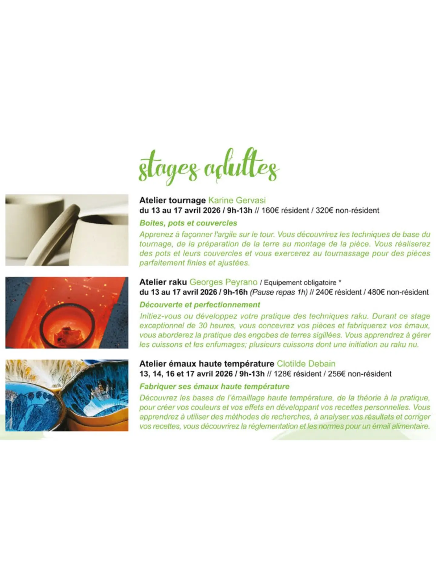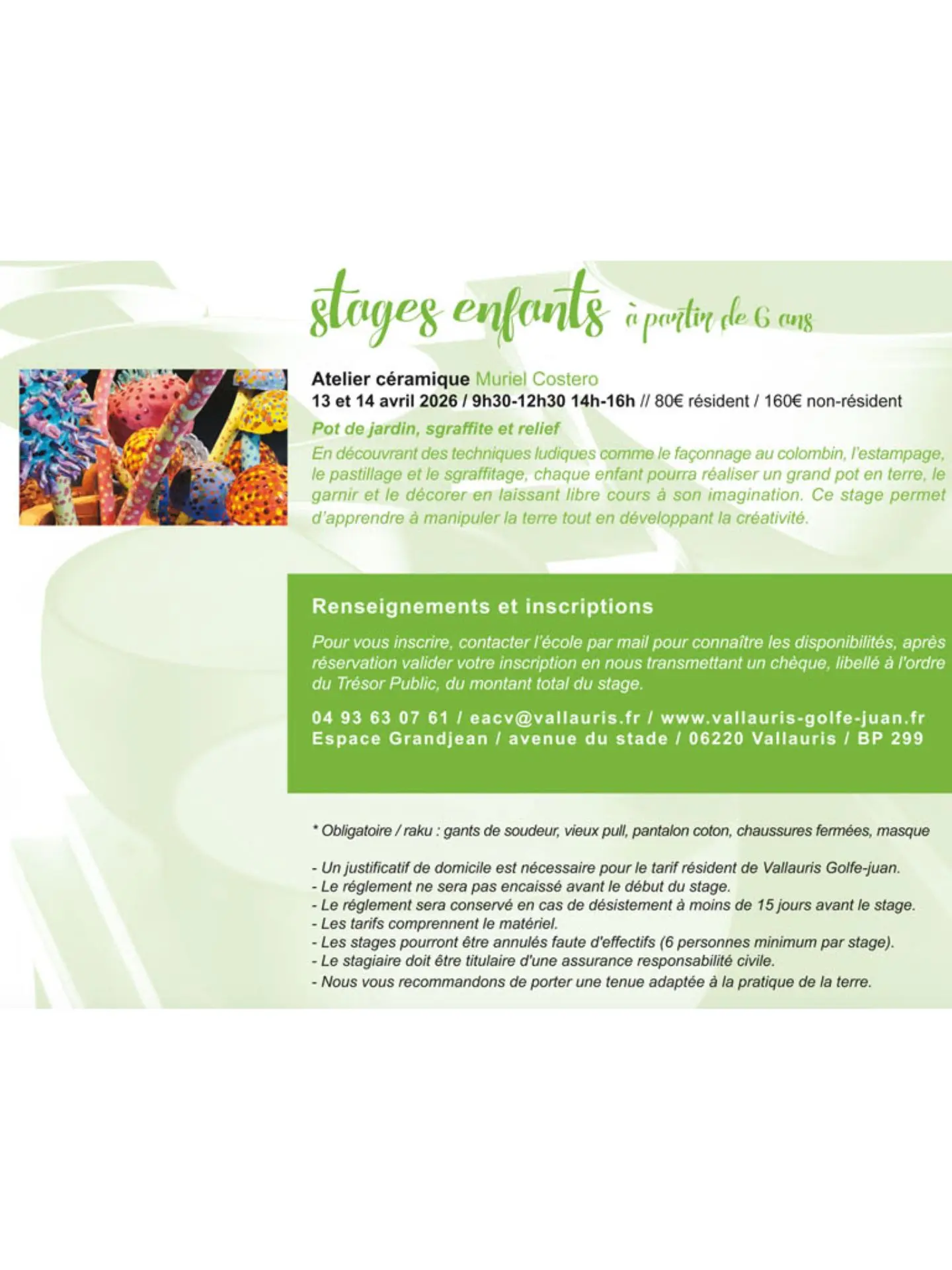 Stages de printemps autour de la céramique EACV