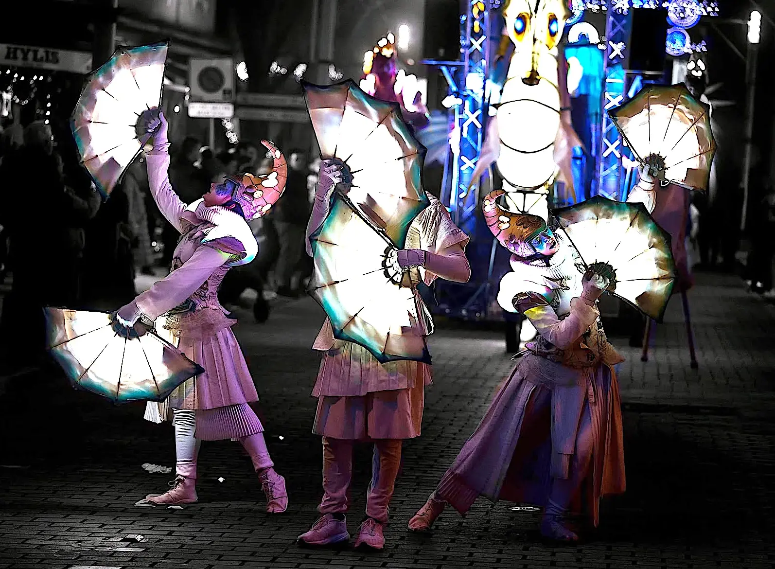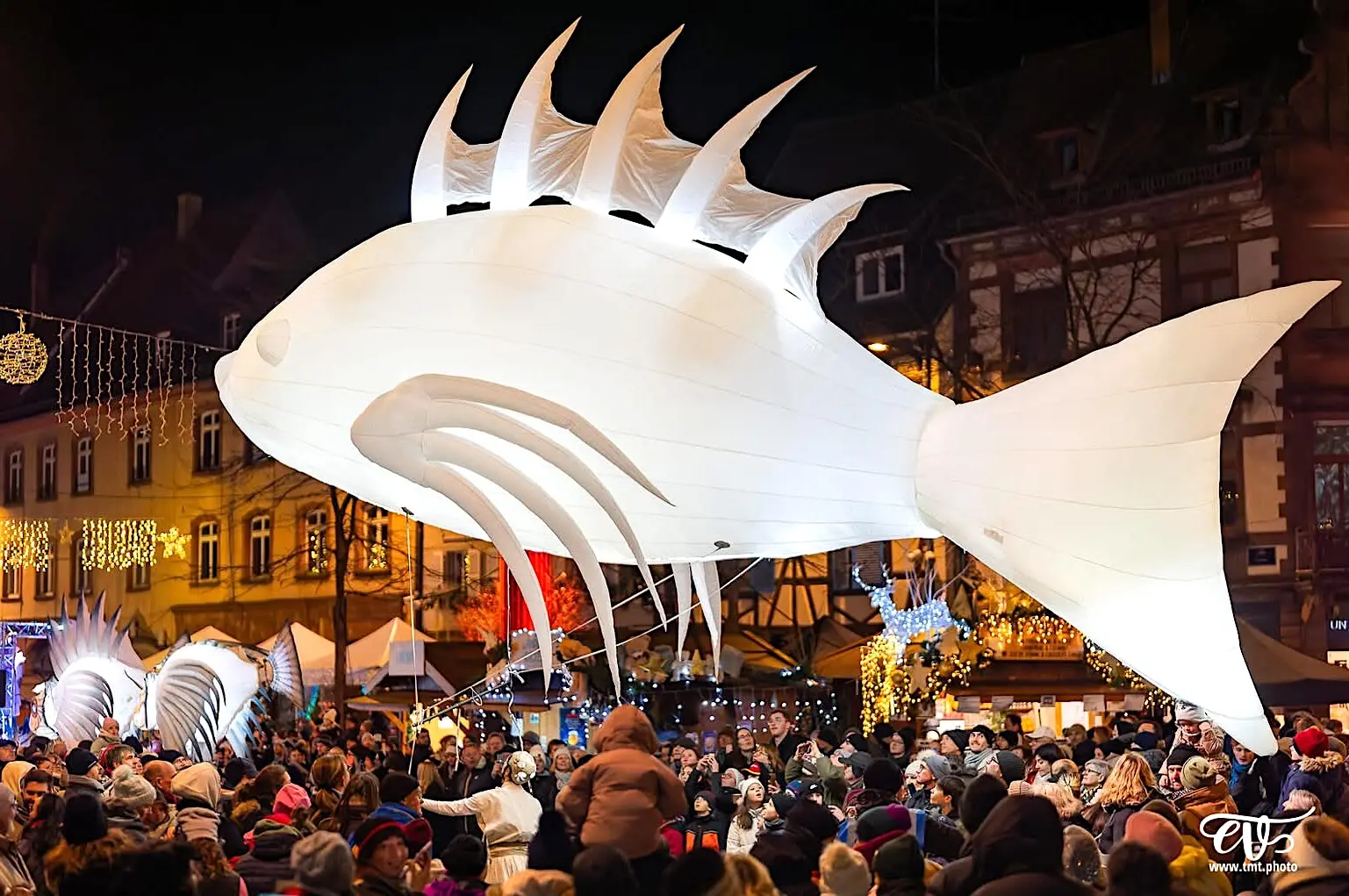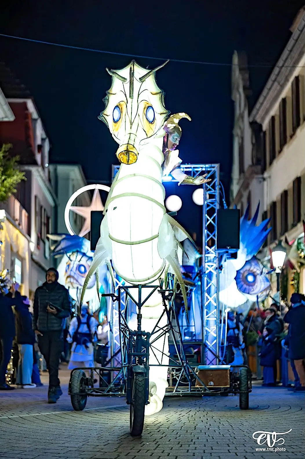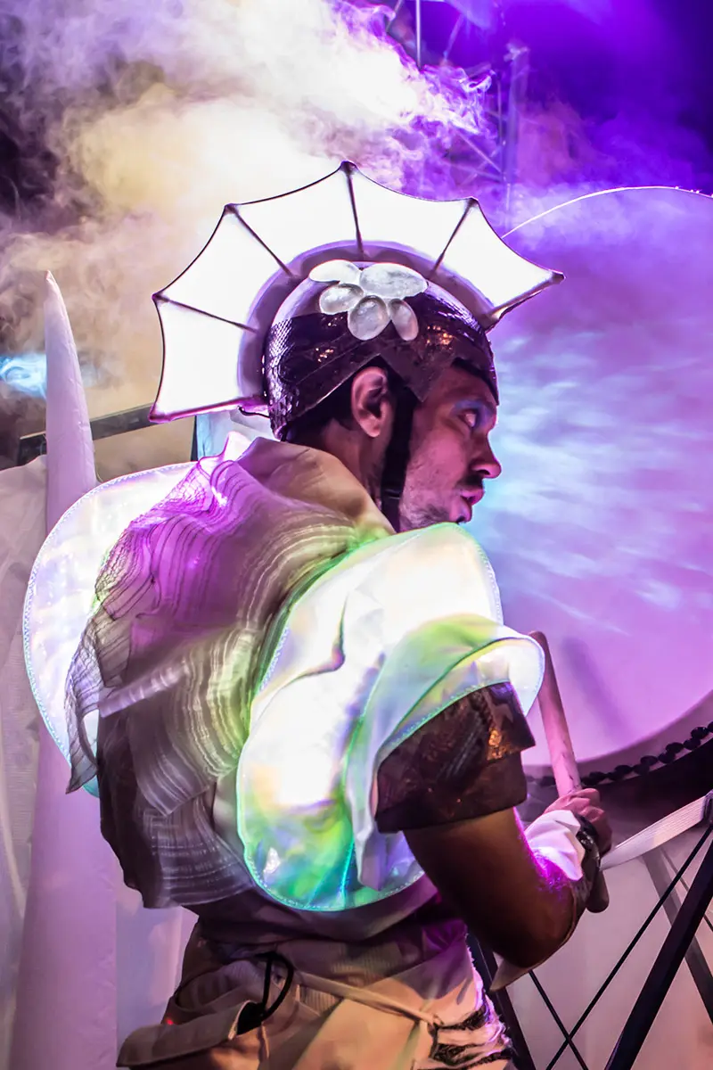 Eine beeindruckende Lichterprozession bewegt sich durch die Nacht, getragen von den Rhythmen der Taikos und Elektroklängen. Eine Milchstraße aus Quallen, funkelnde Gestirne, ein majestätisches Seepferdchen, begleitet von Stelzenläufern der Seeteufel, ziehen stolz den Wagen der Océanis an.