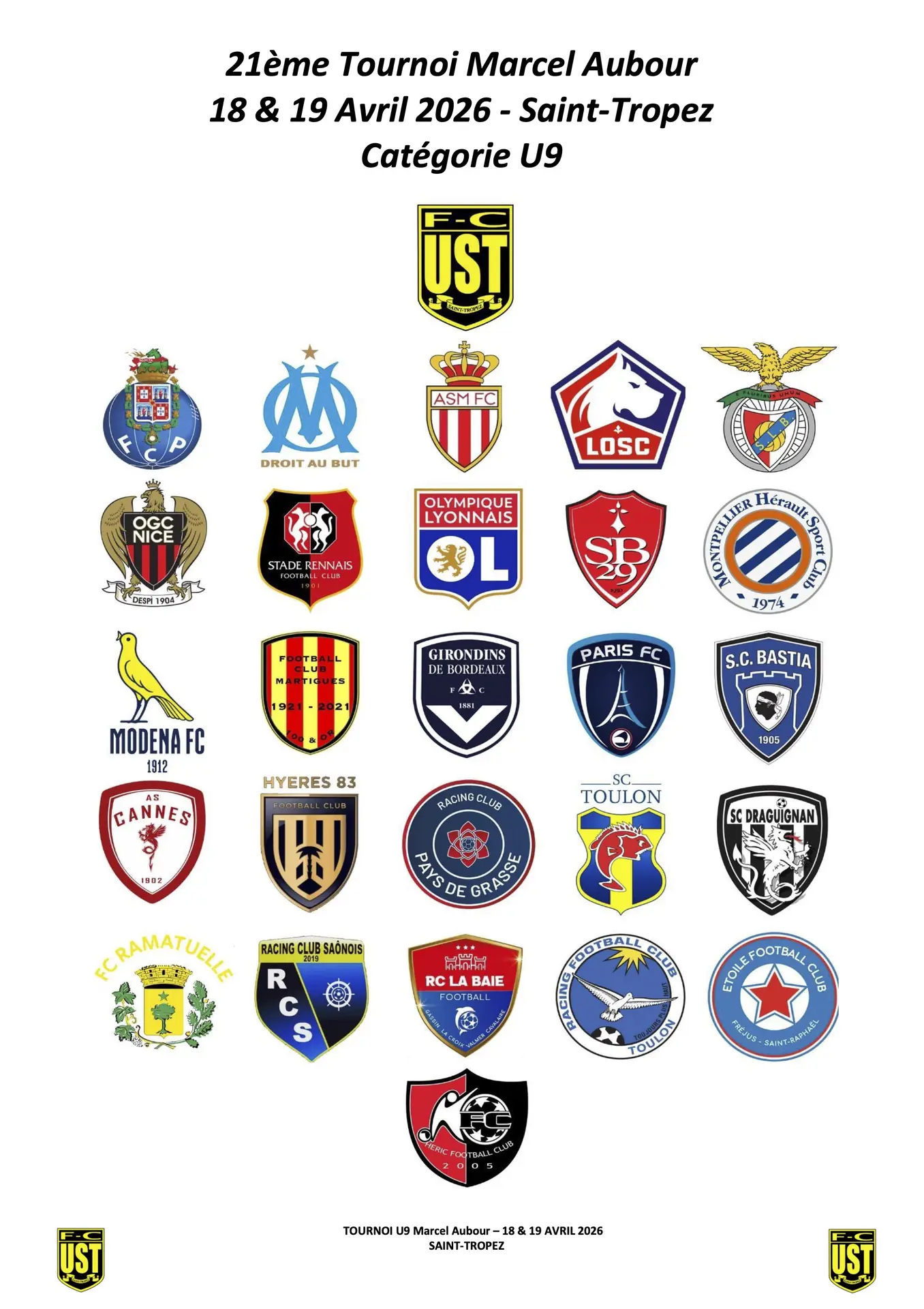 Am 18. und 19. April 2026 findet das 21. Marcel-Aubour-Turnier der Kategorie U9 statt. Olympique Lyonnais wird seinen Titel aus dem Jahr 2024 gegen Olympique Marseille verteidigen.
